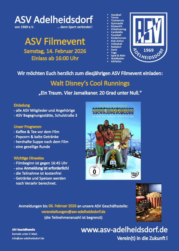 Sie vermissen Ihre Veranstaltung? Schicken Sie uns einfach die wichtigsten Details per E-Mail an info@dorfgemeinschaftsverein-adelheidsdorf.de: Titel, Veranstalter, Ort, Datum mit Beginn- und Endzeit oder füllen unser Formular gleich hier aus: Klick